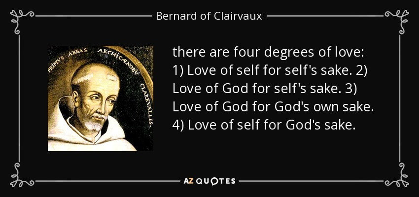 Bernard of Clairvaux, a twelfth-century French abbot, wrote in his book On Loving God that there are four degrees of love through which people can naturally progress. Pastor and author Pete Scazzero has used these degrees to define the stages of emotional health as an emotional infant, child, adolescent, or adult.